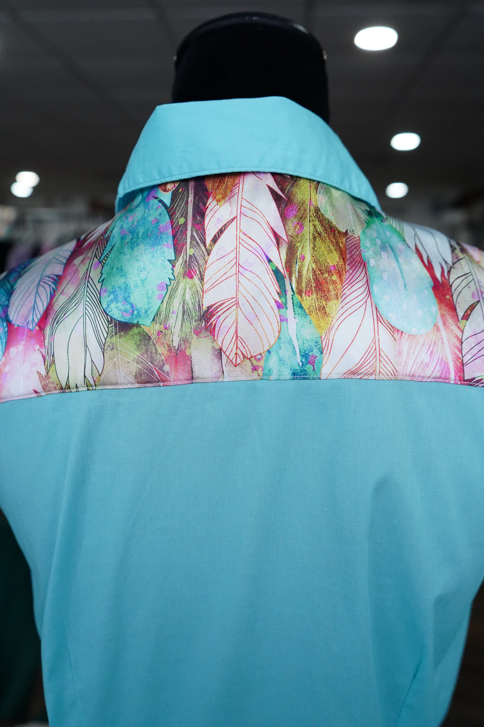 XL - Pink Feathers on Baby Blue Cotton Button Down