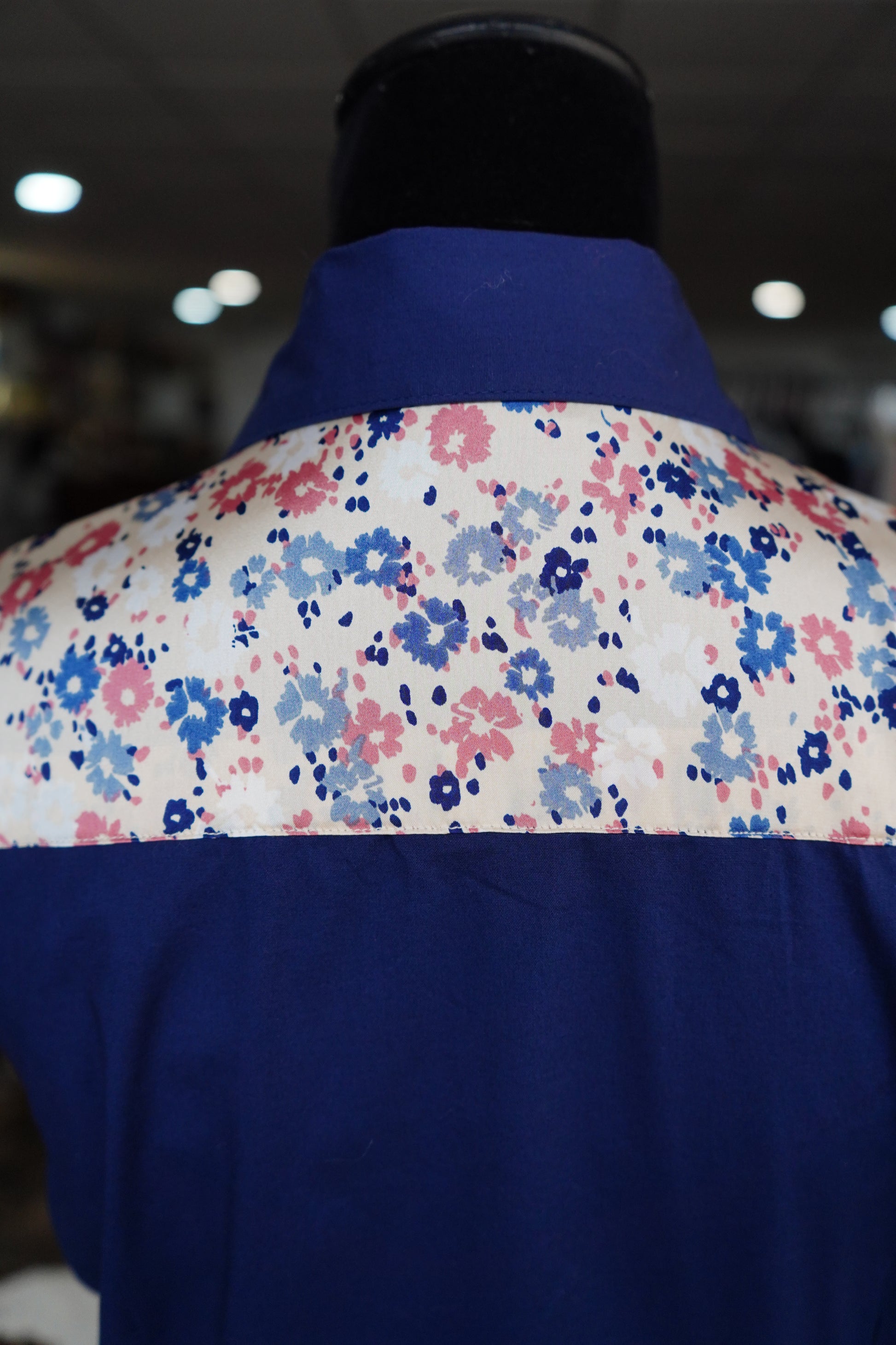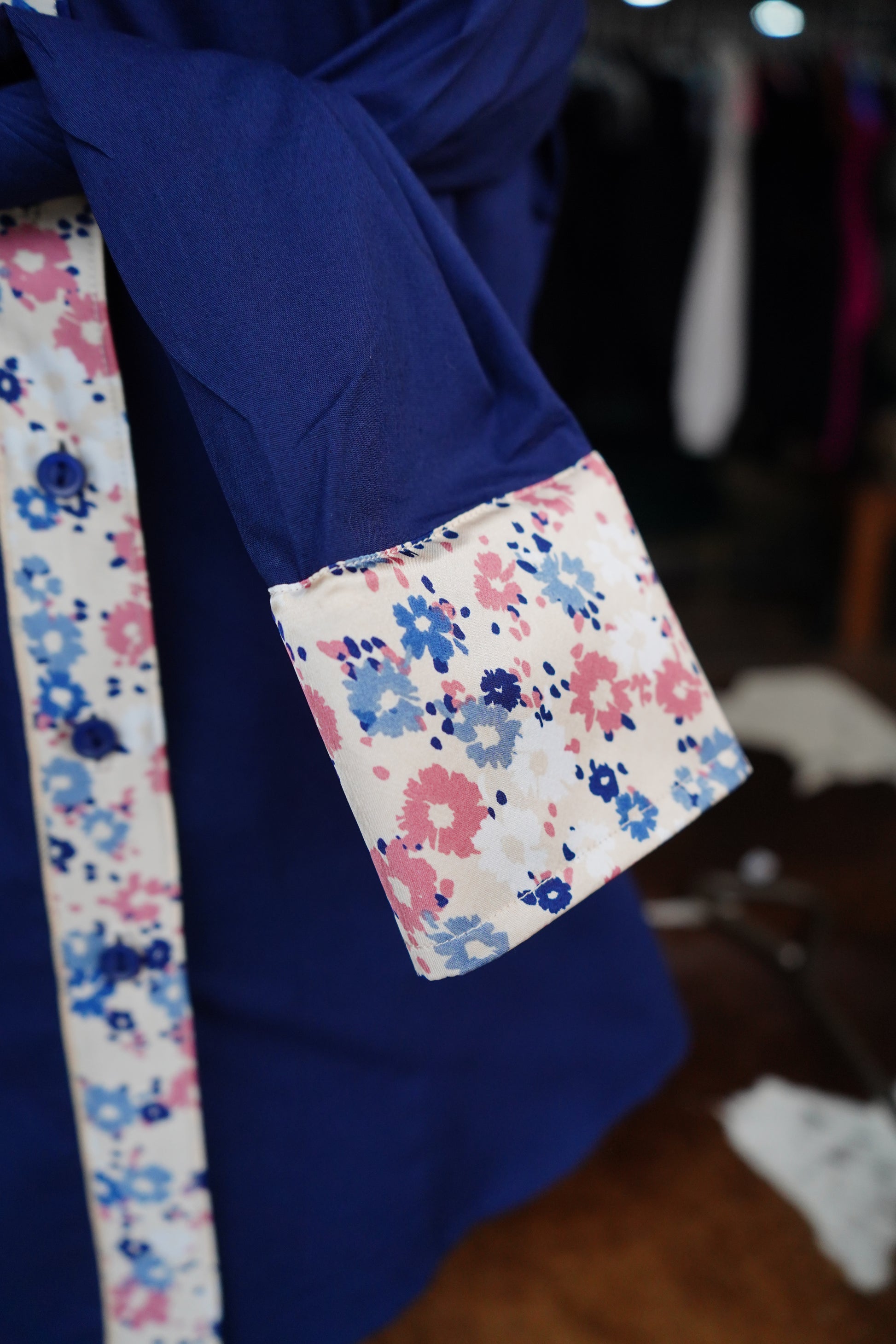 XL - Tan w/ Navy & Mauve Floral on Navy Cotton Button Down