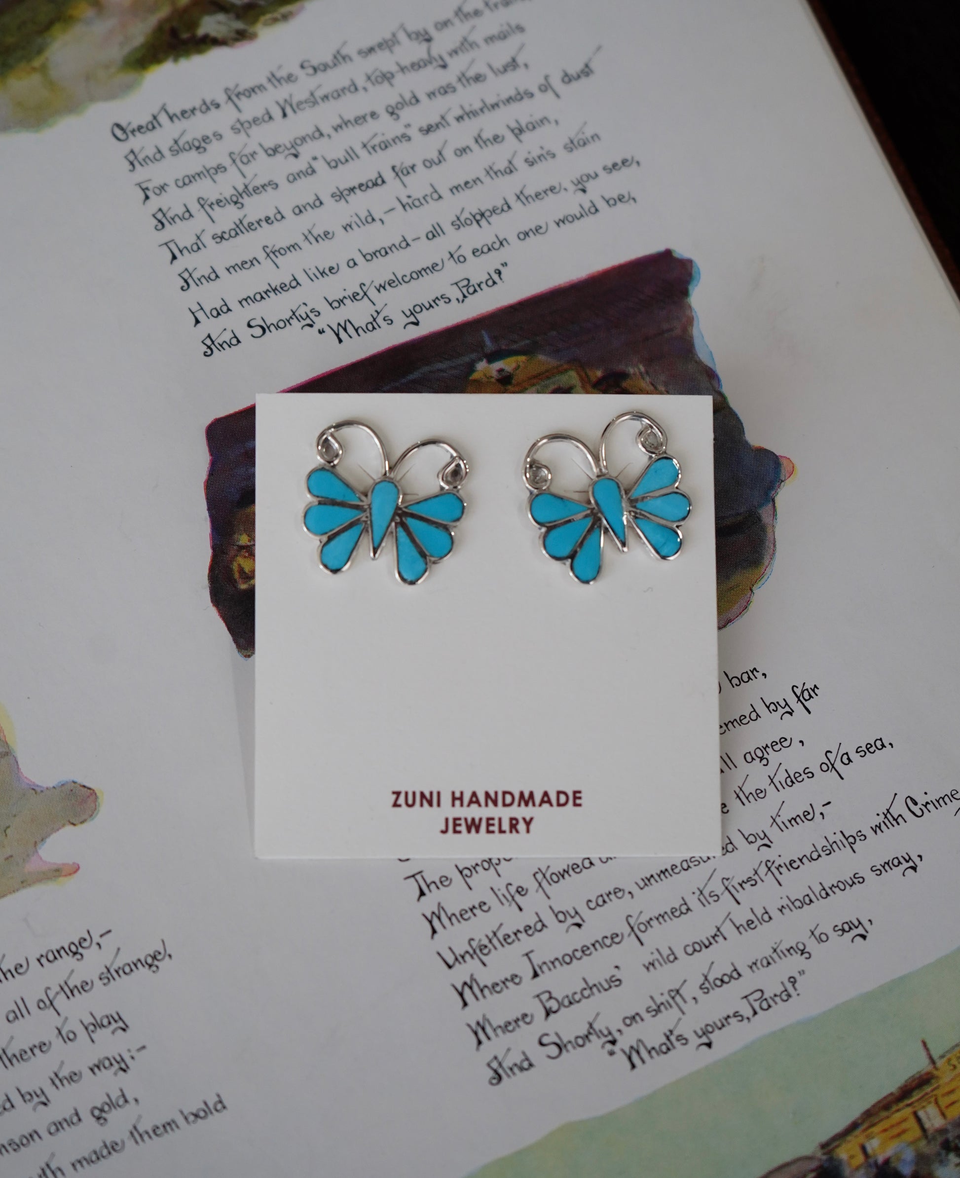 Zuni Inlay Turquoise Butterfly Stud Earrings